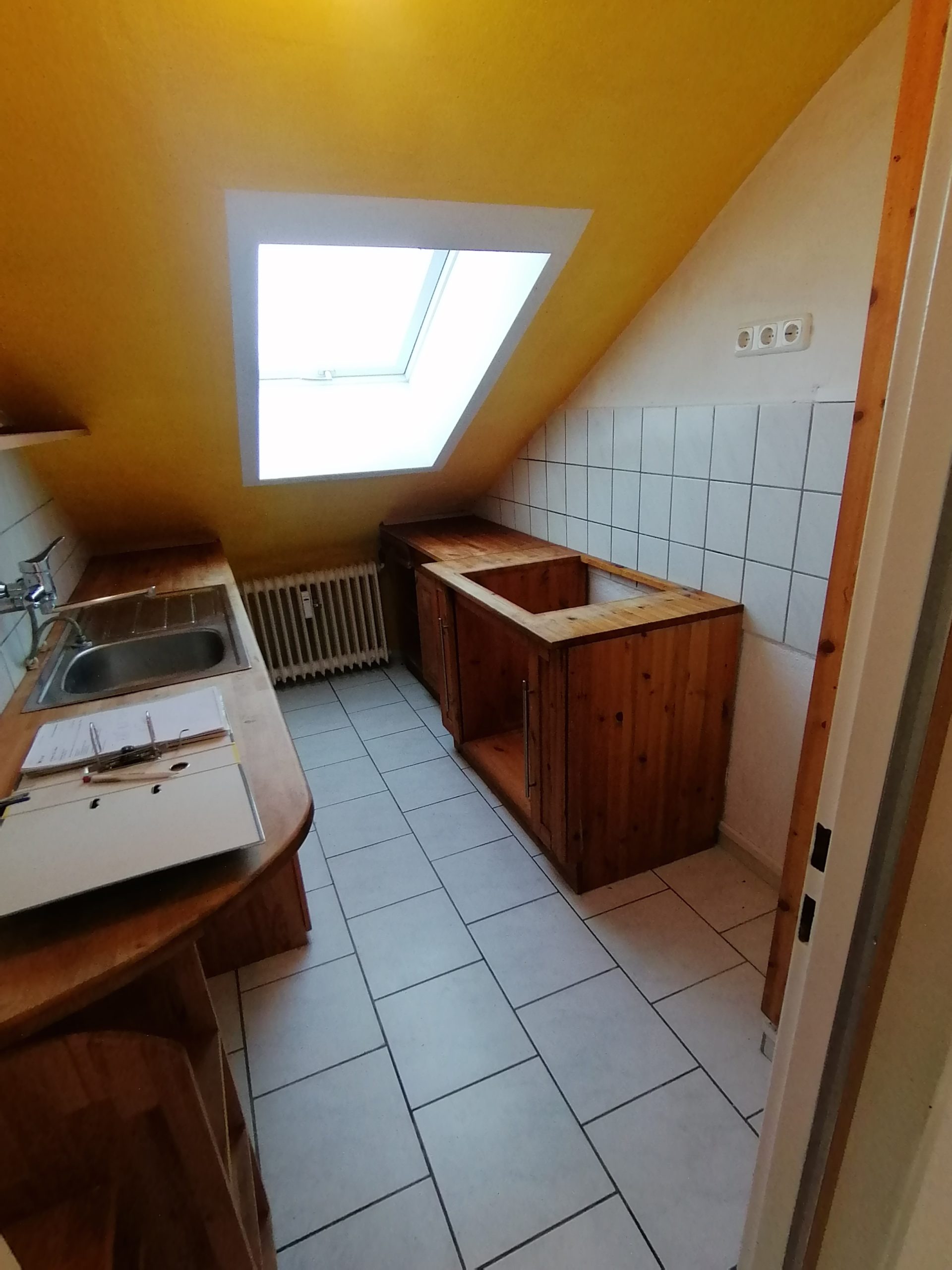 Hier erwartet Sie eine momentan leerstehende Drei-Zimmer-Wohnung in Maintal-Dörnigheim zum Selbstbezug oder auch als Kapitalanlage geeignet. Gerne unterstützen wir Sie auch bei der Mietersuche. In dem Mehrfamilienhaus befinden sich 14 Wohnungen, die Wohnung liegt im vierten Obergeschoss. Es gibt keinen Fahrstuhl, somit entstehen hier keine Kosten. Hier findet man Ruhe und hat keine Nachbarn mehr über sich. Das Haus liegt ruhig, gegenüber gibt es bereits Einkaufsmöglichkeiten. Weitere Möglichkeiten sind in wenigen Minuten erreichbar. Ein Bahnhof ist auch in fußläufiger Nähe. In der Küche besteht die Möglichkeit, einen Geschirrspüler, einen Herd und eine Waschmaschine oder Waschtrockner zu betreiben. Die weiteren Räume sind auch mit Dachfenstern ausgestattet, sodass man genug Tageslicht hat. Im Badezimmer mit elektrischer Lüftung