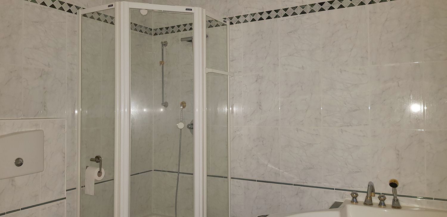 Badezimmer mit Jacuzzi-Eckbadewanne